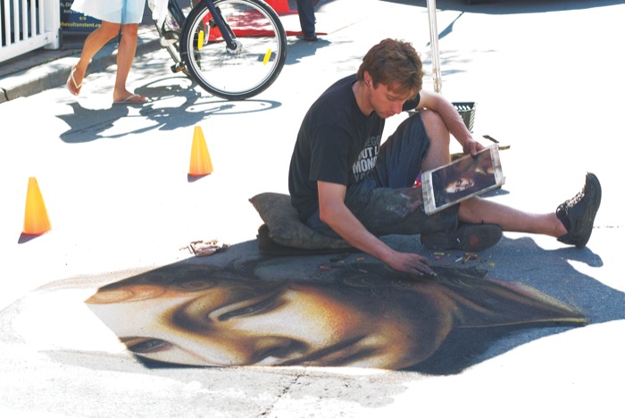 Not so flashy and overbearing like many of the other performances, our very own Canadian from Ottawa, Chalky, sat on the sidewalk, reproducing famous historic portraits using nothing but chalk (you guessed it). The result is a smooth, well-blended depiction of the real thing, and all from a man who looks like he could be one of the spectators, clad modestly in cargo shorts and a t-shirt. Chalky’s art will stand the test of time, but unfortunately, not the test of rain showers and pigeon droppings.