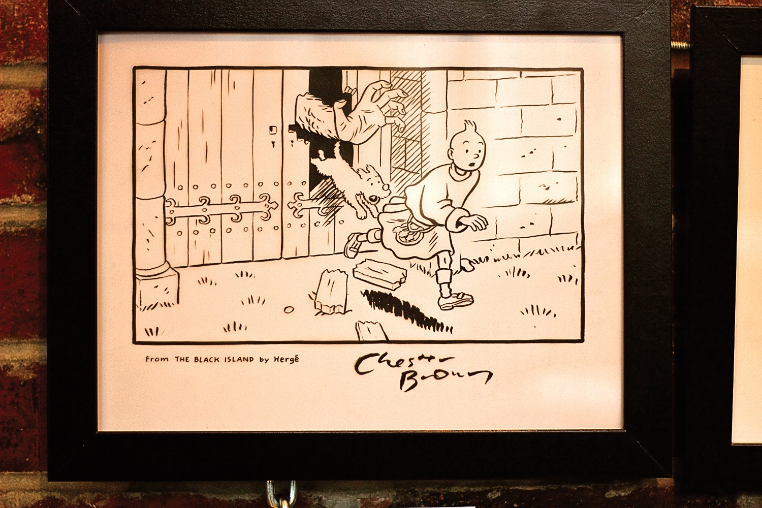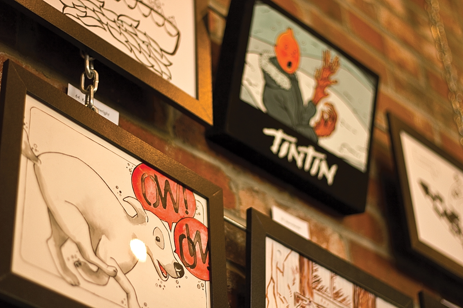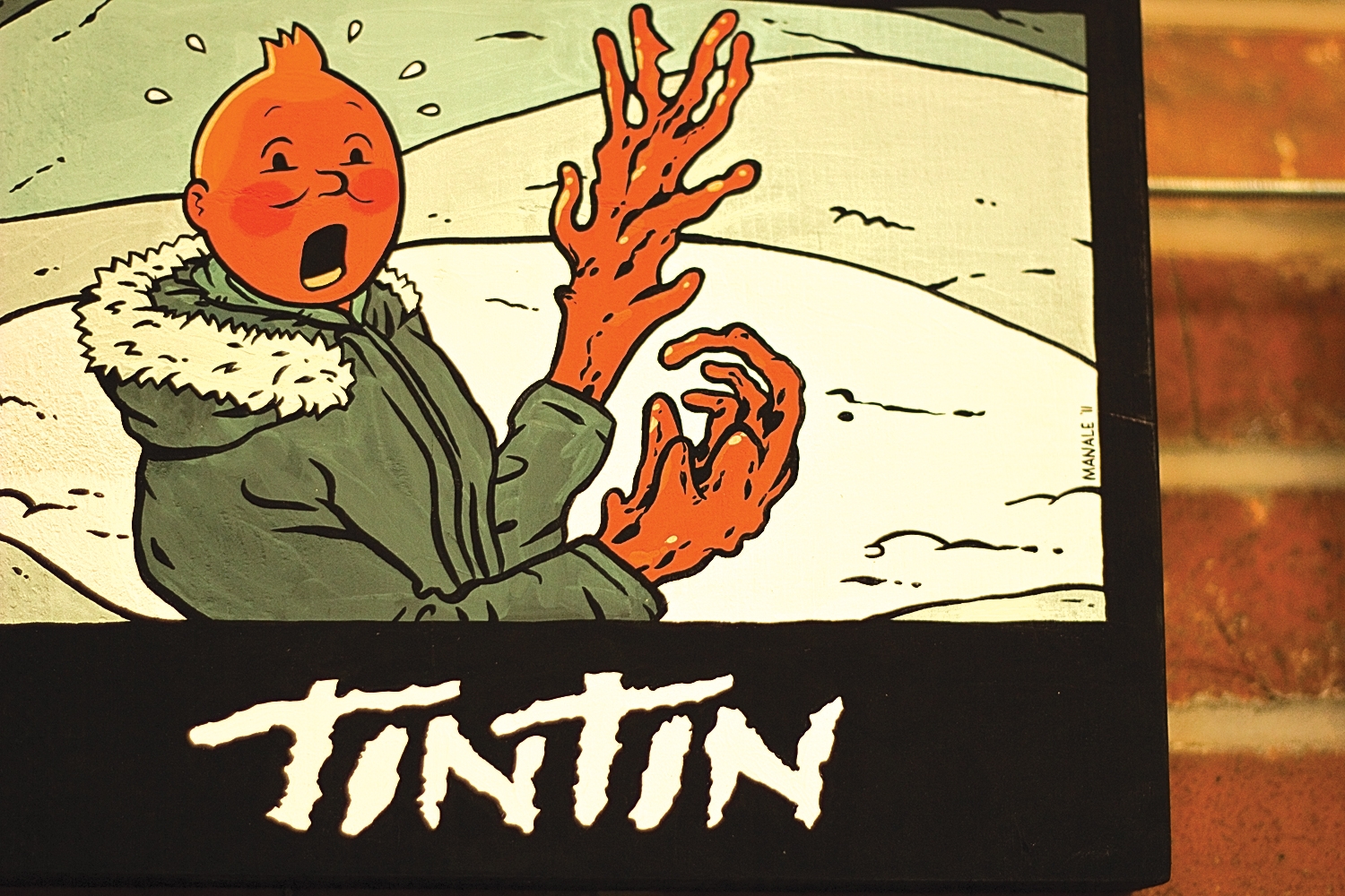 Including work from Toronto-based artists Chester Brown, Michael DeForge, and Zach Worton, the collection of drawings and paintings reworks the characters, at times humourously, and at times somberly. Sponsored by The Beguiling, a comic shop in the Annex, the art show pays homage to Hergé’s extensive artistic legacy. Peter Birkemoe, owner of the cozy shop, is humble about the whole affair.