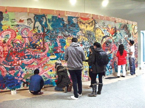 Graduate student Nathan Schaffer is behind the no-rules mural in the Centre for Fine Arts, inviting anyone to contribute