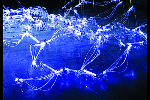 Not only does the Quasar 2.0 react to data collected from the observatory stations, but the gallery in which it will be displayed will be outfitted with sensors that will react to the movement of audience members in the exhibition, which will result in a spectacular light pattern.
