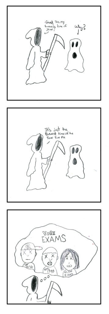 WARNING: A loose gorilla ran wild in the Harry W. Arthurs Common at Keele campus March 19. The gorilla, flanked by enthusiastic human supporters, ran around scaring the pre-exam fevers out of unsuspecting students all afternoon. If seen, students, staff, and faculty are advised to retaliate by yelling right back in its face. No word on whether the gorilla accepts bananas or small children as payment. Students are also reporting sights of a fierce honey badger.
