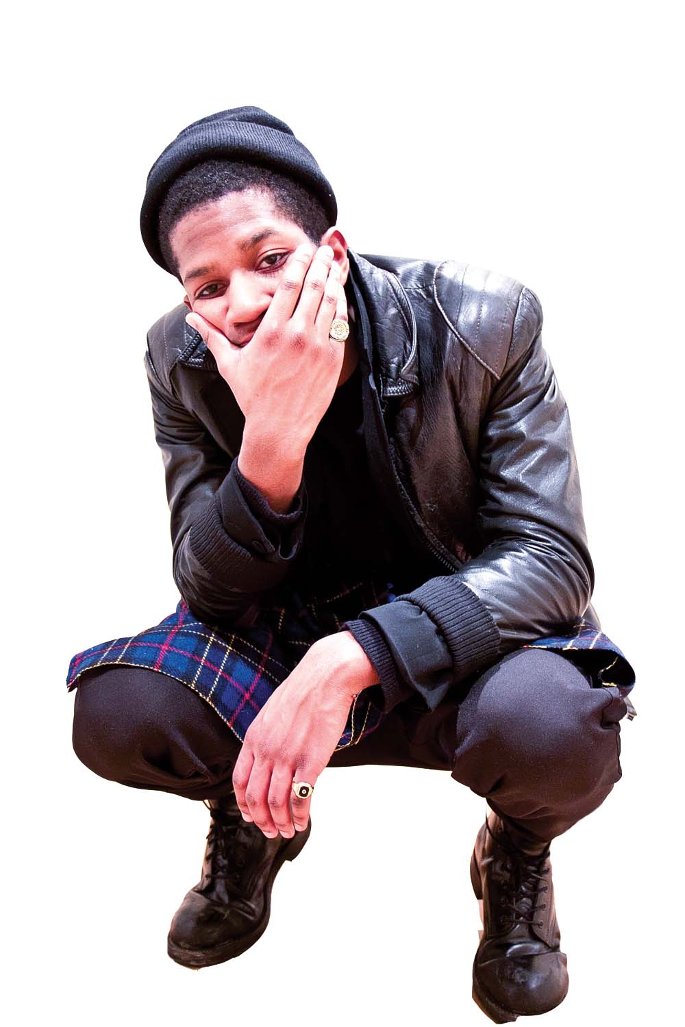 This ensemble is a bit more on the edgy side. Although it’s not the look every guy would go for, the black on black attire makes anyone look cool and mysterious. It’s also a known fact that black is very slimming, making the outfit welcoming to all sizes and shapes. The tartan kilt was added for a standout effect and to add a bit more spice. The black wool toque and leather motorcycle jacket add a grungy touch to the look, but the minimal accessories of two rings keep the look from being too flashy.