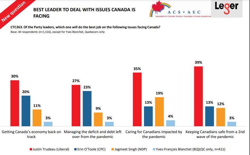 “Other indicators confirm that the WE Charity matter is creating scar tissue for the incumbents,” the poll states. “For the first time in months, more people have a negative view of the prime minister than a positive one.”