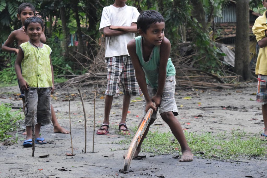 After lunch, the children gather for their weekly Sunday afternoon game of cricket, played with DIY tree branches as wickets.