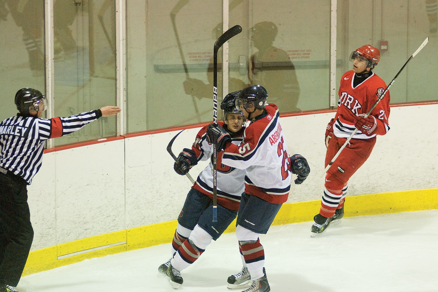 Penalty trouble remained a constant issue for the team throughout, as the game started off with many York players sitting on the bench. Strong players such as Jesse Grespan and Ryan Kerr were called for checking and tripping and it was enough for Brock to take advantage and score with four minutes remaining in the first period. Forward Derek Brochu broke the York’s defence and slid the puck just past the reach of York goalie David Blair at the 16th minute mark with assists by Matt Abercrombie and Joey Pell.