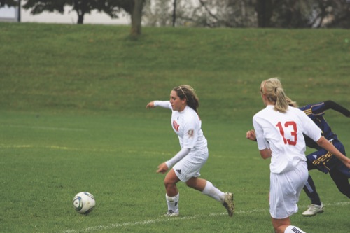 Though Windsor had a definite plan of attack, the Lions struck first. Rookie forward Colleen Beesley put in the first goal in the fifth minute. She was able to drill a shot past Lancers goaltender Rebecca Singer, while being challenged by defenders. Lions captain Nicole Markowitz set up the scoring opportunity with a crafty 15-yard pass splitting the defense. Both teams were applying the pressure towards the end of the half with York able to stay on top.