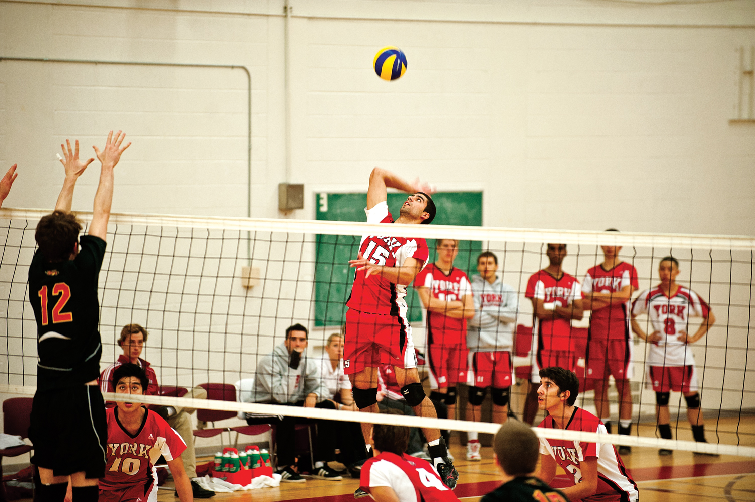 Brains over brawn was the theme of the November 4 volleyball match between the Waterloo Warriors and the Lions. With over half of their team towering between six-foot-five and six-foot-eight, the Warriors looked gargantuan next to York’s players. However, the Lions still managed to knock down the giants, winning 3 sets to 0.