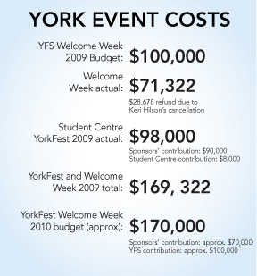 According to Salter, the YFS and the Student Centre were able to obtain $70,000 from sponsors this year, $20,000 less than what the Student Centre received last year for YorkFest.