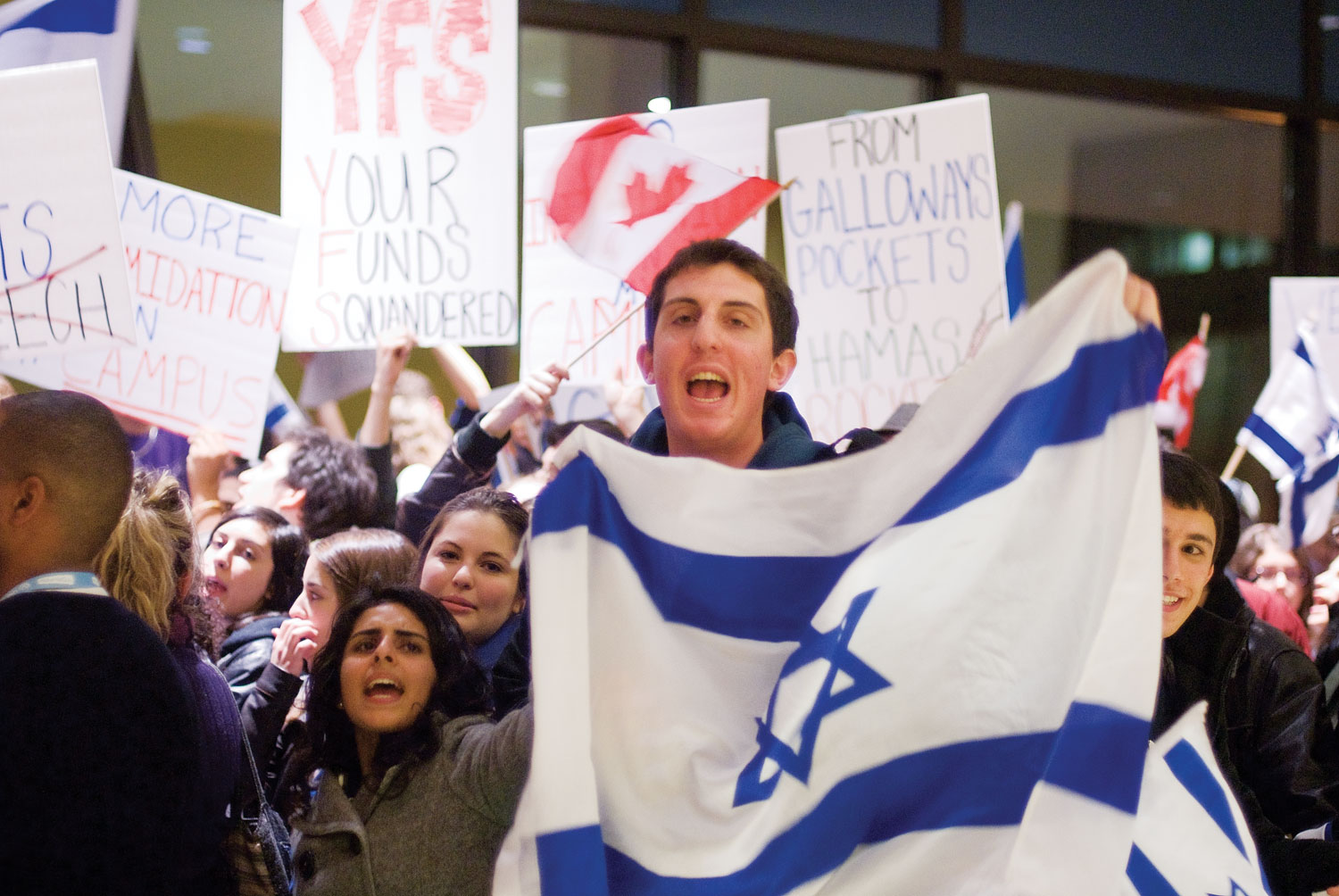 Boiling cries of “Viva, viva, Palestina!” elicited louder chants of “Go away, Galloway!” from an opposing crowd that was against the York Federation of Students- organized event.