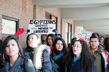 “We’re holding a rally to support the people in Egypt,” said participant Yomna Salem, who said she has family and friends involved in the ongoing protests against Mubarak. “We are showing them we care about human rights, too. Everyone in the world should be free to enjoy human rights as well […] the Egyptians have to fight for this.”