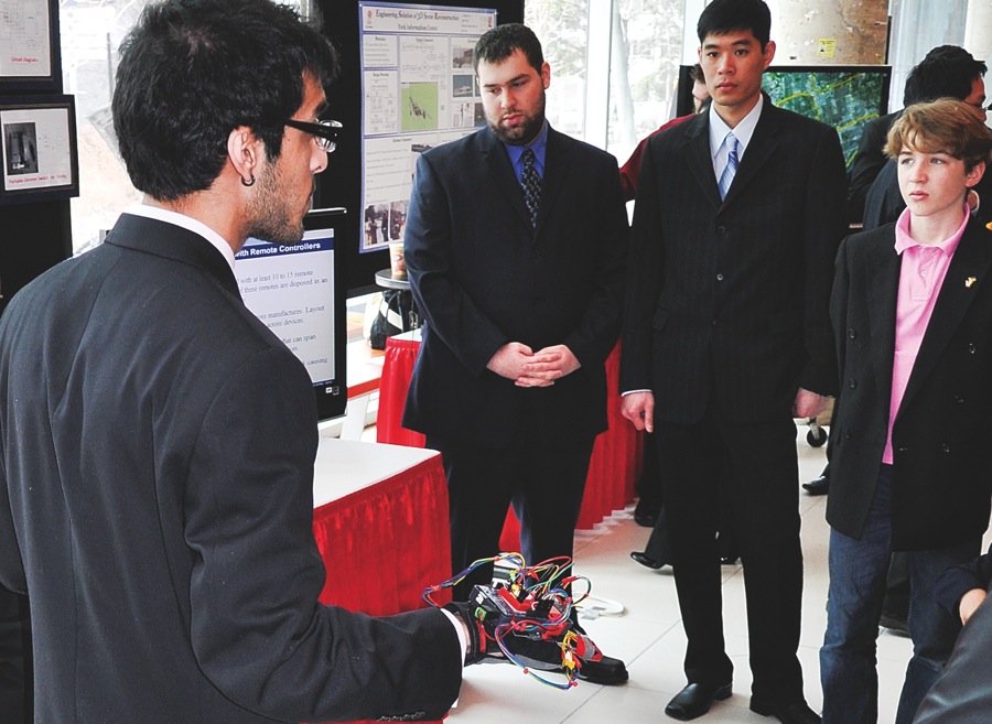 A team of York engineering students have been recognized for their research into human-computer interaction. Their e-Glove, a gesture interface device, won second place at the annual ENG 4000 competition held on April 21. Their device functions as a wearable remote controller; instead of buttons to turn appliances on or off, the e-Glove uses hand-gestures.