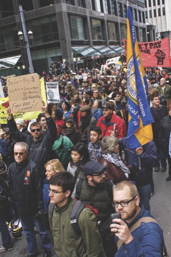 stationed officers nearby where the nearest bathroom was. Very courteously, they helped me find one. It’s easy to have a biased view of police at protests, but they were there to keep the peace. It was a very far cry from police behaviour at the G20.
