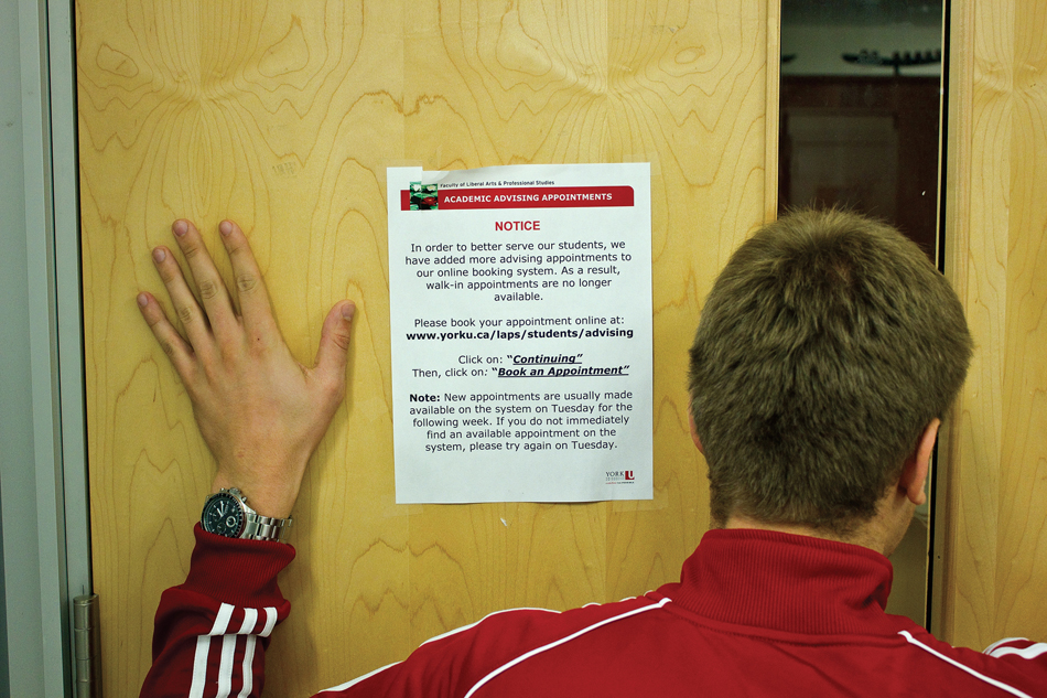 Instead, students will find a sign redirecting them to a York website where they can sign up for online advising—a system that is most often fully booked.