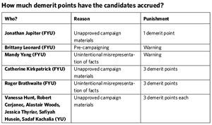 When it came to the issue of Blueberry Hill’s impending closure, both candidates expressed support for the eatery. However, Brathwaite incorrectly stated that Excalibur had reported that the current YFS was not involved in the Save Blueberry Hill initiative and subsequently received three demerit points from the CRO.
