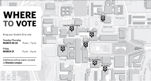 Current president for 2011-2012 and president hopeful Vanessa Hunt promised to push for the implementation of the recommendations of the METRAC safety audit, a concrete sexual assault policy, and elimination of the late payment interest fees on tuition.